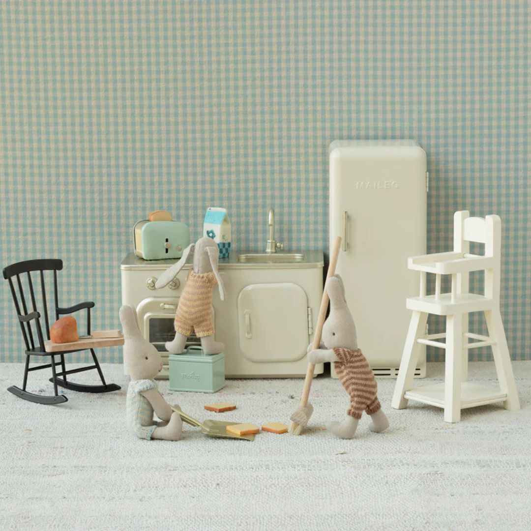 La Chaise Haute My pour Souris Maileg est un accessoire bébé élégant et fonctionnel spécialement conçu pour la maison poupée Maileg.