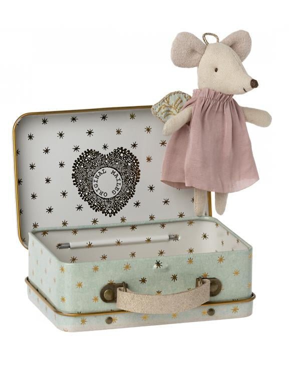 Et hop! Ma super souris ange Petite Soeur Avec Valise de Maileg est arrivée! Elle fait partie de la collection 2025. Parfaite pour vous accompagner partout, elle est plus mignonne que jamais. Quoi de mieux pour me rendre charmante et élégante!