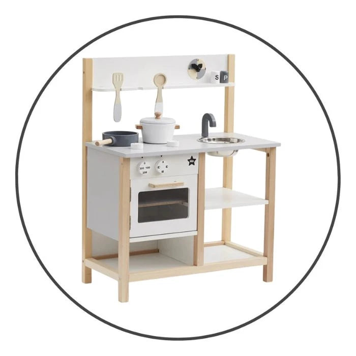 Das perfekte Holzspielzeug, um Kinder sicher an die Freuden des Kochens und des pädagogischen Spiels heranzuführen!