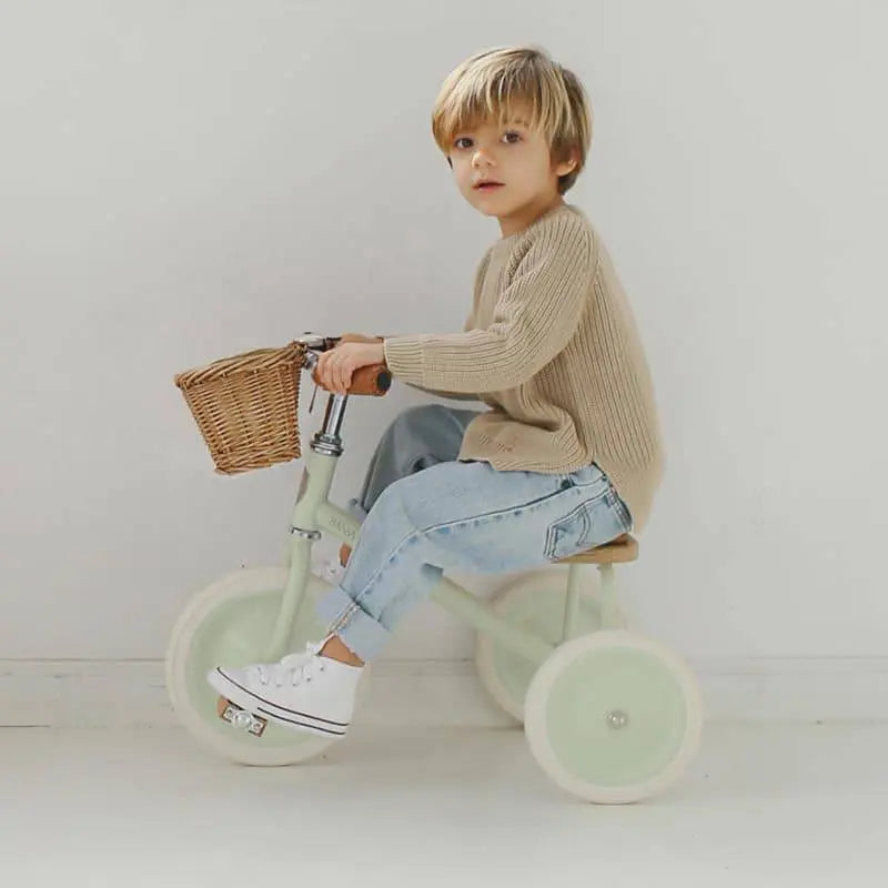 Family business, Banwood creates children's bikes, balance bikes, scooters, tricycles and beautiful children's helmets. Retro-inspired, all Banwood products are offered in delicious ice cream shades and come with wicker baskets to store treasures. Bikes, scooters, tricycles, and balance bikes are always classic birthday and Christmas gifts cherished for years.