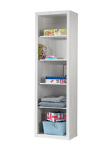 This Robin bookshelf is made of white lacquered MDF combined with solid pine. The bookshelf has 4 adjustable shelves and is finished with fine vertical grooves.