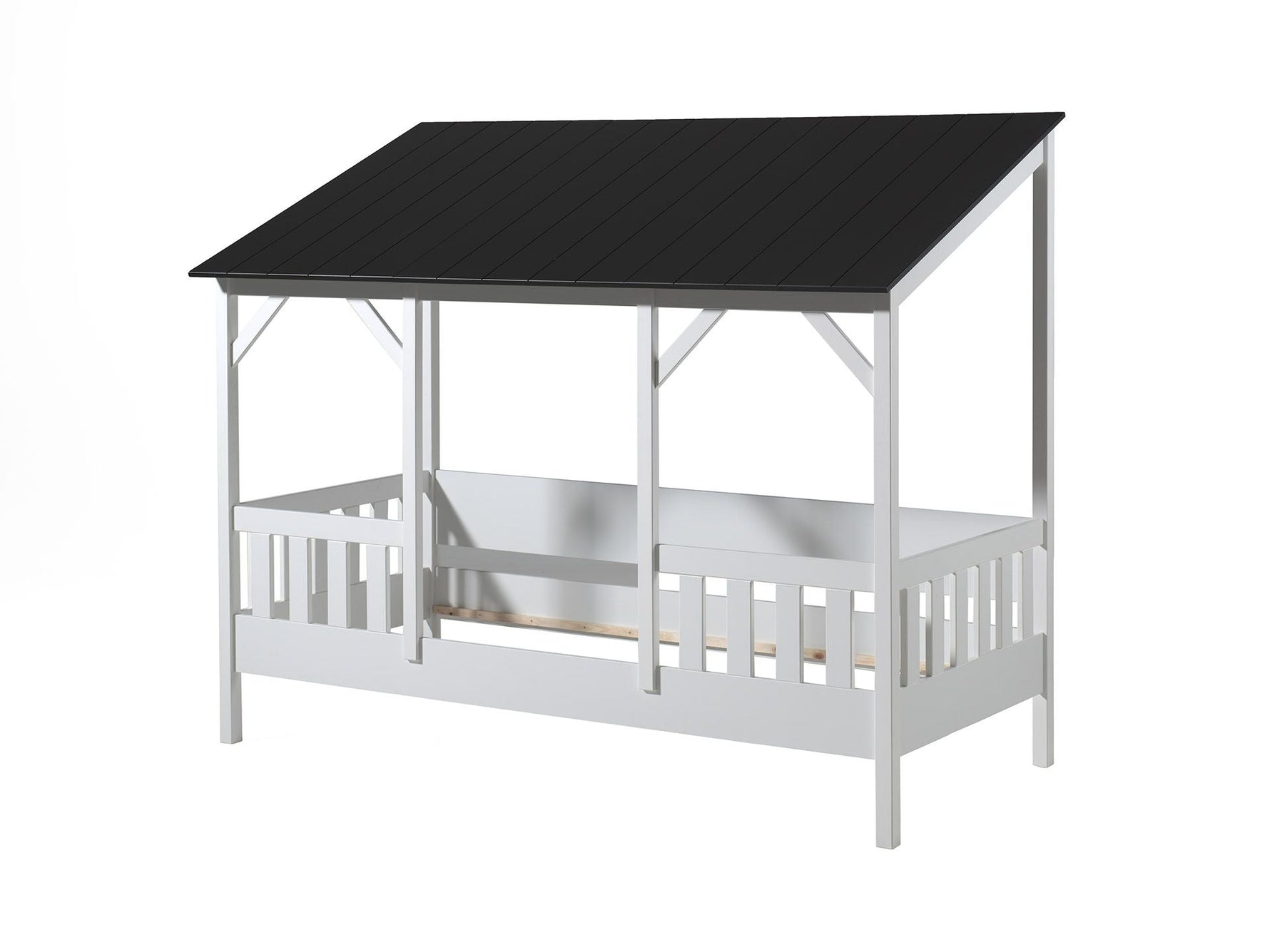 El color negro aporta un toque contemporáneo que se adapta fácilmente a todos los estilos de decoración, desde las habitaciones más minimalistas hasta las más originales. Los laterales elevados aseguran una protección eficaz contra caídas, manteniendo a la vez una apertura suficiente para la autonomía del niño.