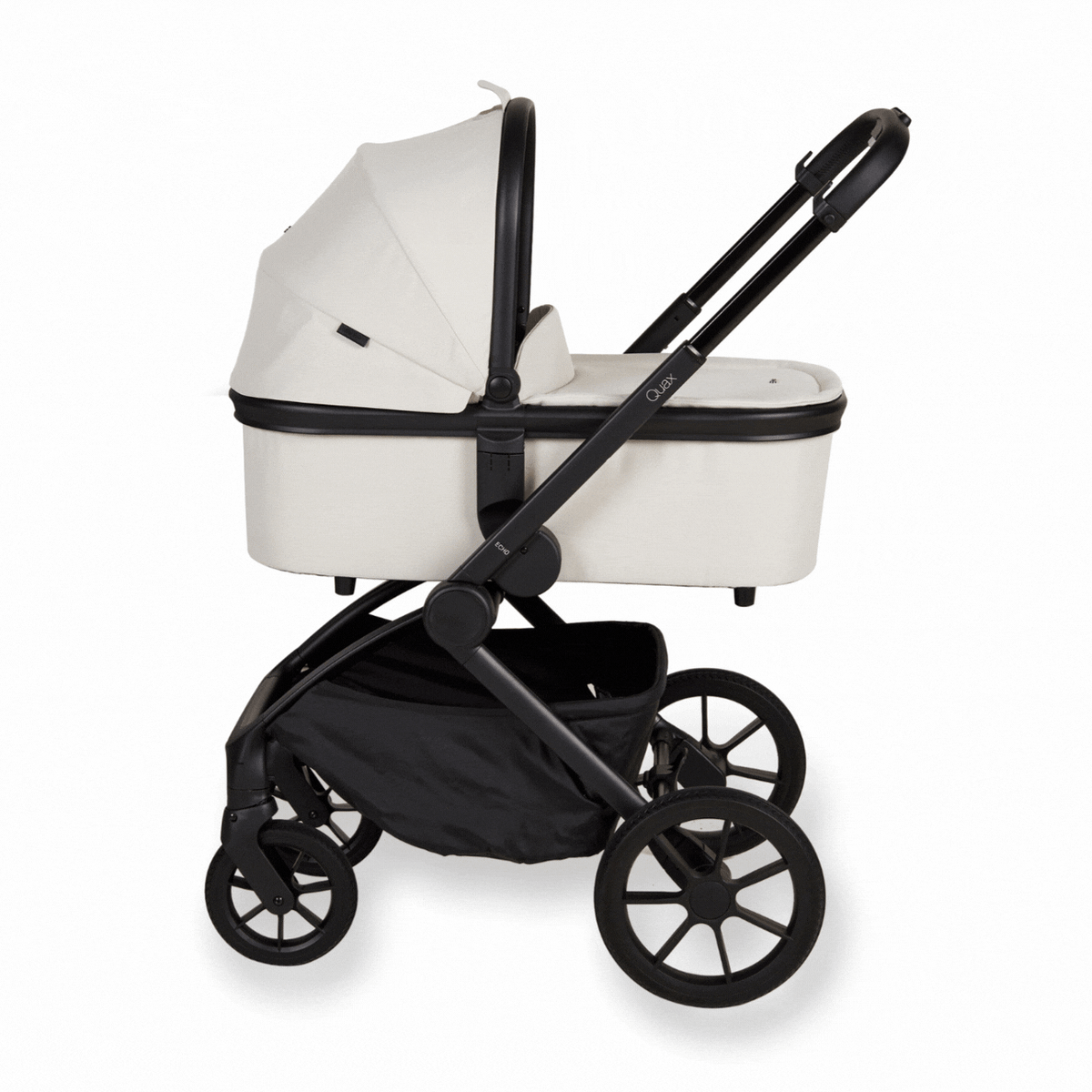 La navicella Echo è disponibile nei colori neutri emblematici di Quax: nero, verde muschio e beige, per uno stile sempre impeccabile. Il telaio è venduto separatamente, in kit con il seggiolino.