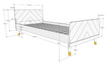 Ce lit simple de BILLY est fabriqué en MDF de haute qualité et est laqué dans la couleur gris intemporel tendance. Le lit est décoré d'un motif graphique sur la tête de lit et le pied de lit, ce qui donne à ce lit un look unique. Les pieds dorés soulignent le caractère rétro. La table de chevet BILLY est la touche finale parfaite à n'importe quelle chambre ! Cette combinaison s'intégrera parfaitement dans un intérieur romantique ou moderne.