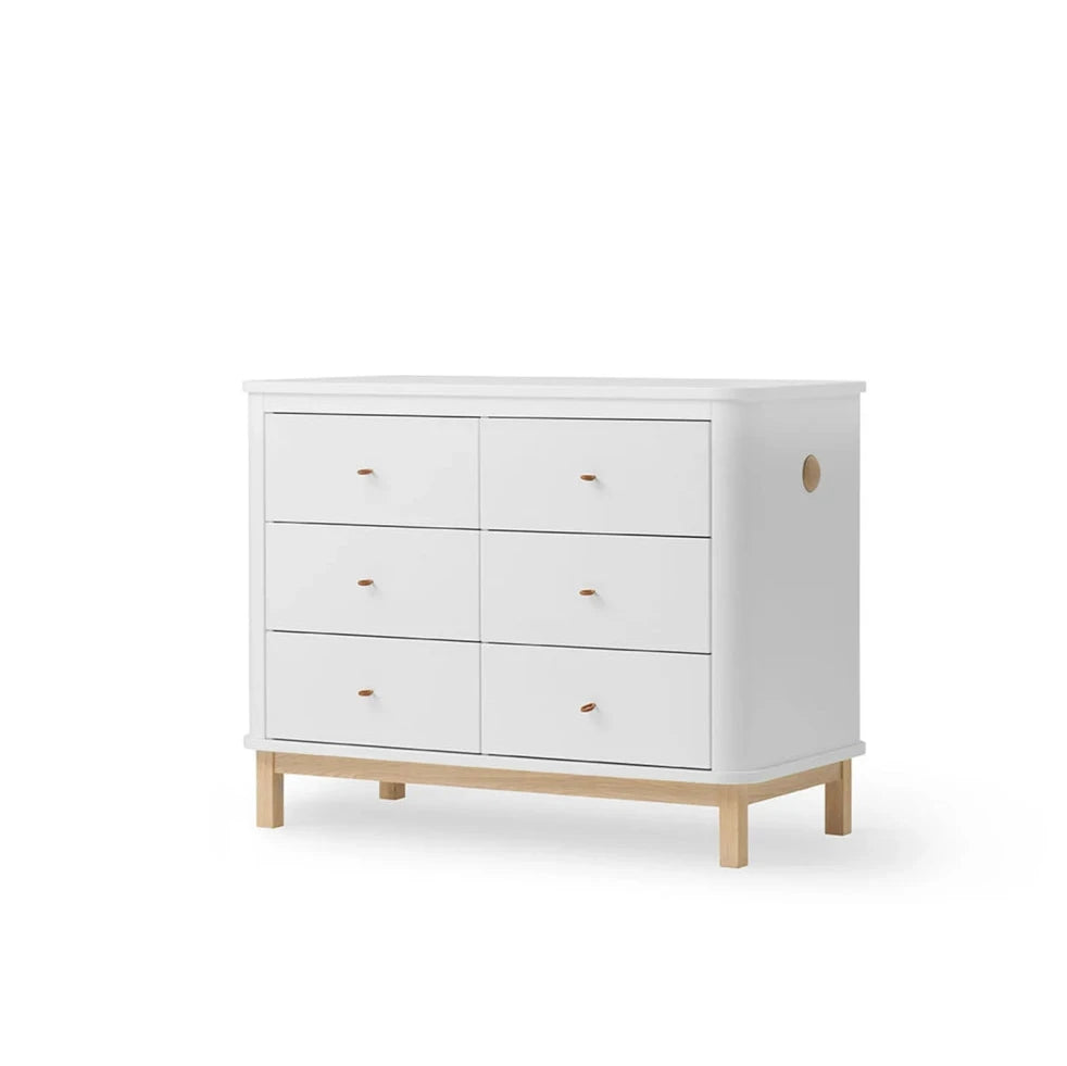 Commode 6 Tiroirs Wood, Blanc/Chêne