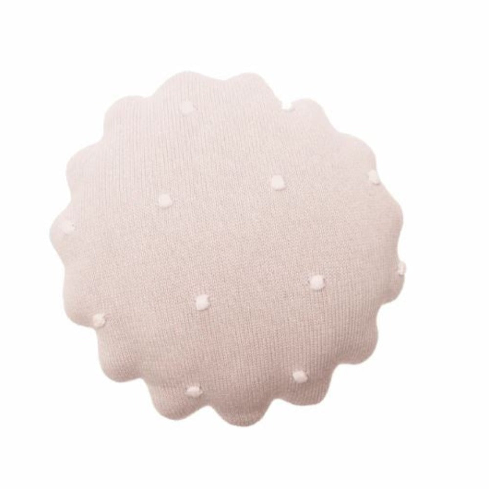 Coussin Tricoté Rond Biscuit Rose Perle