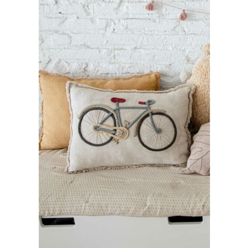• Ce coussin vélo en toile de Lorena Canals présente une image de bicyclette brodée à la corde dans des couleurs vintage, devenant ainsi le complément parfait de la décoration à thème de la collection Eco-City pour les chambres d'enfants.