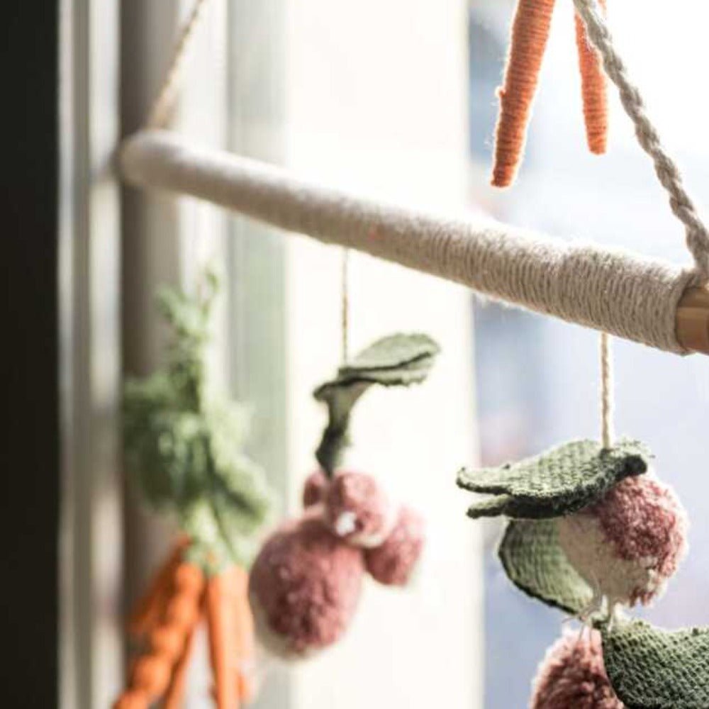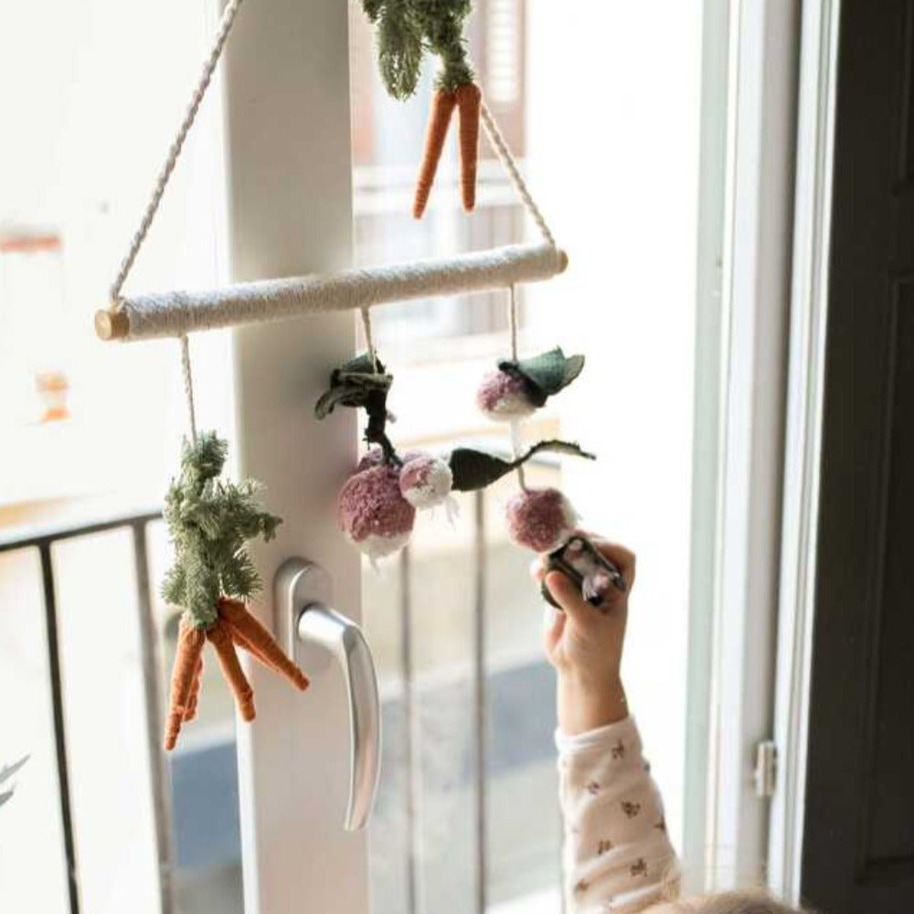 • Les légumes sont à la mode dans le monde des jouets écologiques d'Oli&Carol, qui espère inspirer des habitudes alimentaires saines aux plus petits. Cette suspension murale avec de jolies guirlandes de légumes apportera une touche finale à n'importe quelle pièce—même la cuisine !