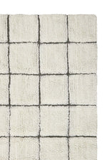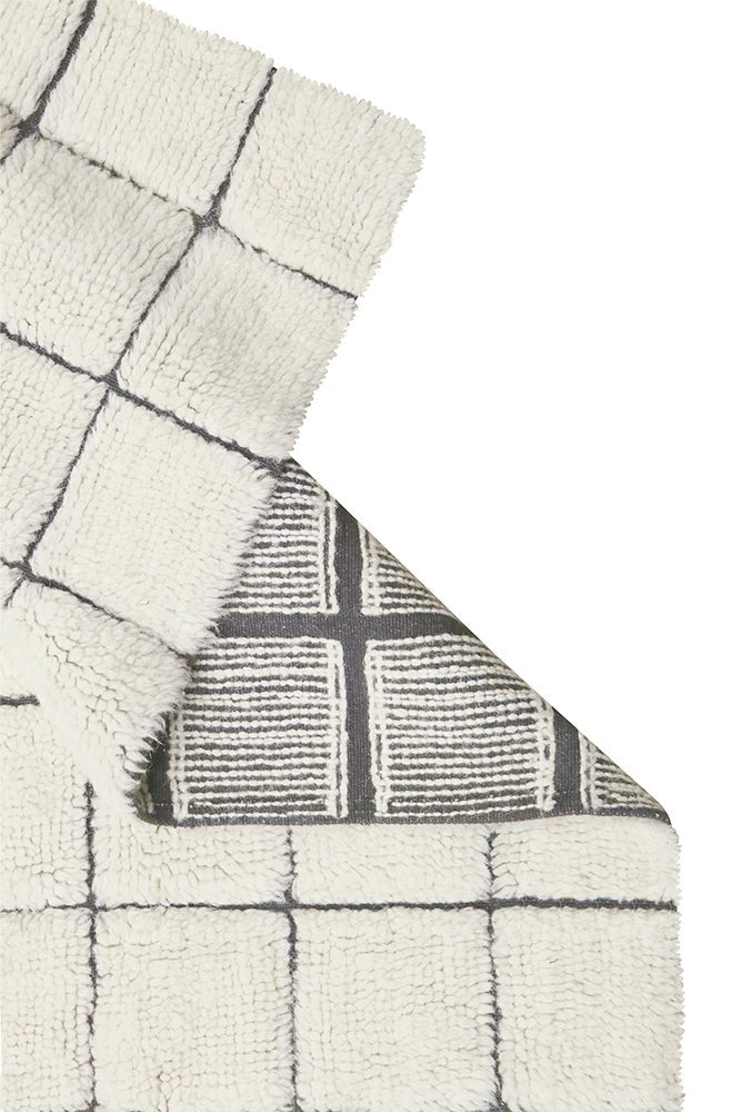 • Design naturel : motif à carreaux en laine non teinte sur une base en toile gris foncé