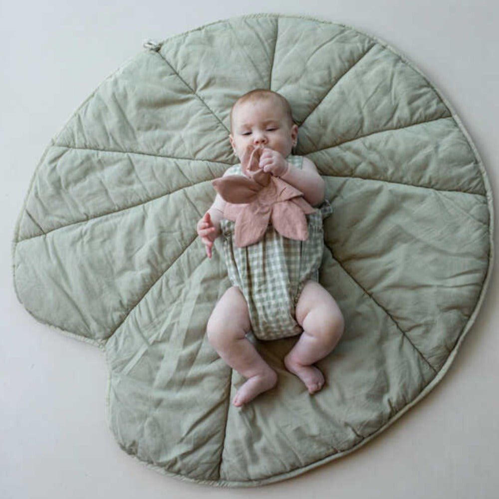 • Comme les bébés adorent ricaner au jeu de stimulation ! Regardez leurs progrès alors qu'ils semblent flotter sur ce tapis de jeu doux en forme de nénuphar. Livré avec un jouet en textile de coton biologique en forme de nénuphar rose aux pétales bruissants.