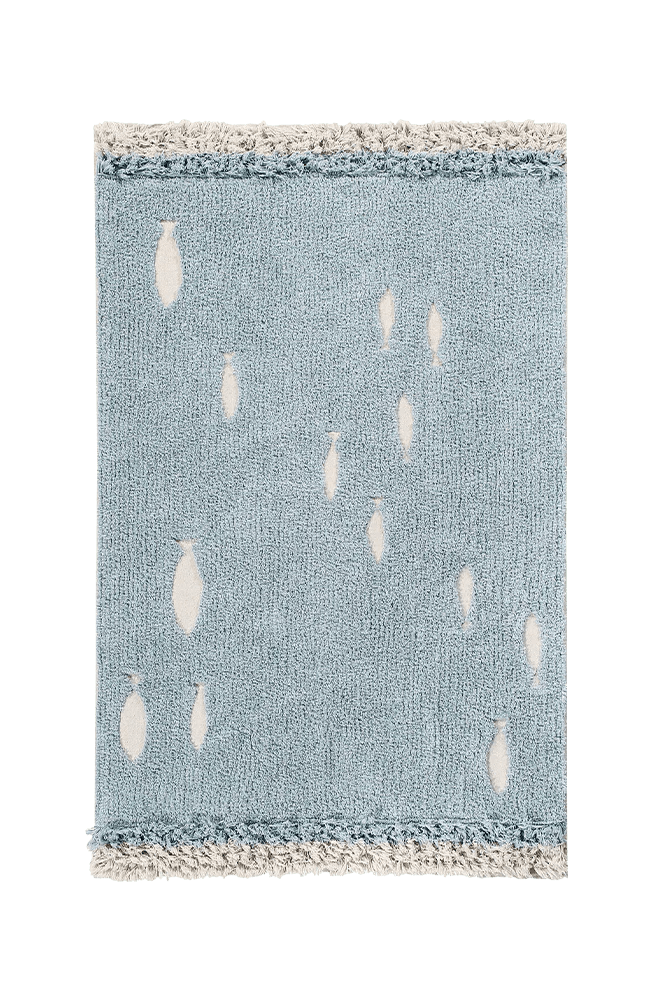 Imaginez des petits poissons nageant joyeusement sur un fond bleu évoquant la mer. Le tapis Ocean Shore est conçu avec soin, avec des zones non tissées qui prennent la forme de ces adorables poissons, créant un effet visuel captivant. Les franges sur les bords rappellent l’écume des vagues, apportant une touche de fraîcheur estivale à votre espace.