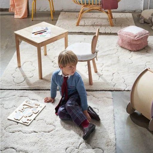 Le Tapis Lavable "Rugcycled" Nuages de Lorena Canals est le choix parfait pour transformer la décoration de la chambre de votre enfant! Ce tapis en coton recyclé ajoute une touche douce et stylée à n'importe quel espace.
