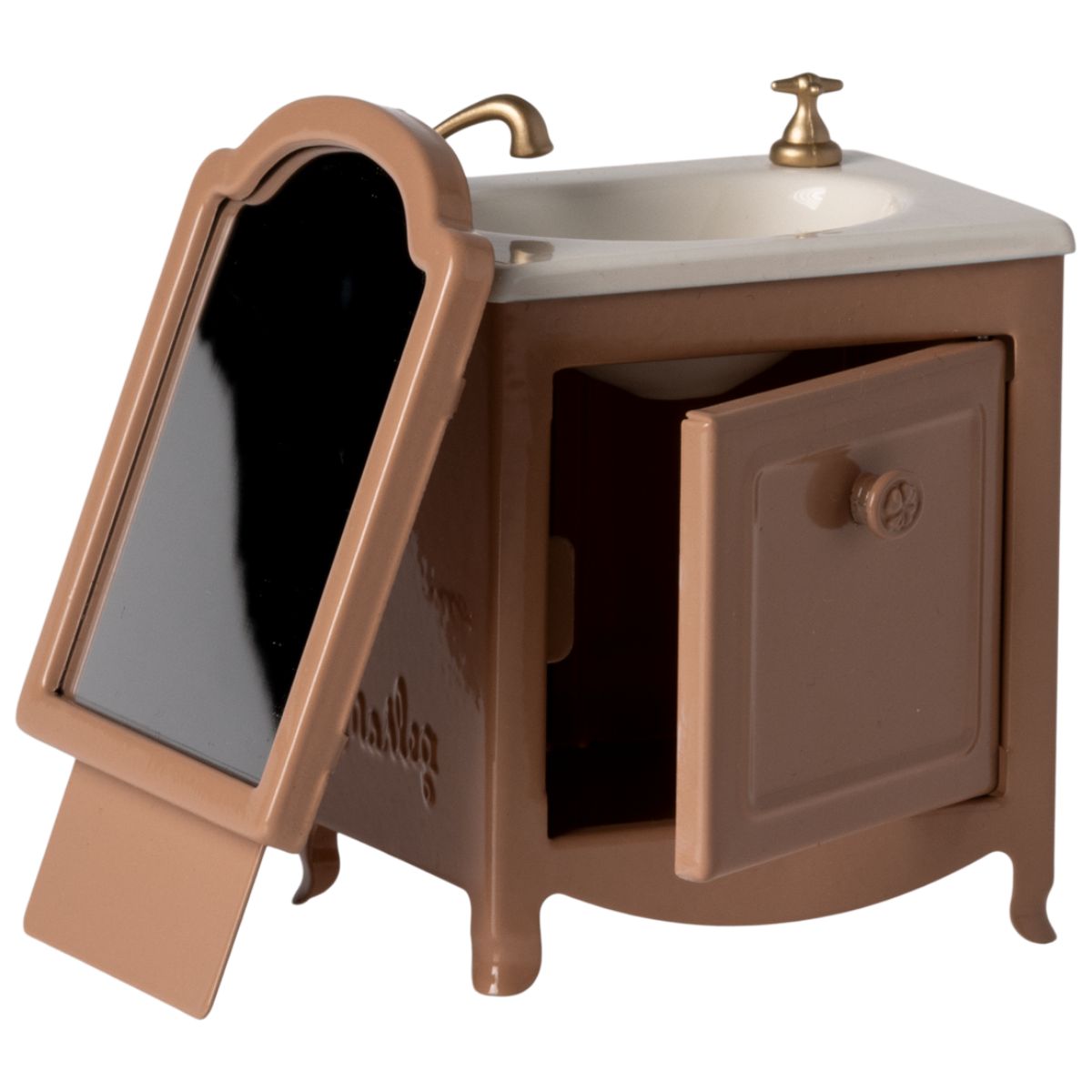 Um elemento indispensável para a casa de banho dos ratinhos. Inclui um espaço de arrumação debaixo da pia e, claro, um bonito espelho. Adicione a sanita e a banheira Maileg para completar o jogo.
